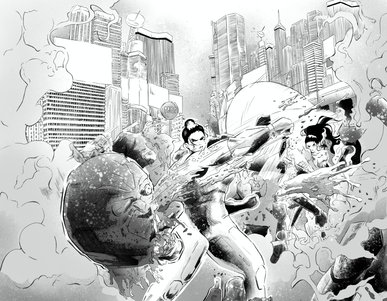 Finished inked pages and illustrations featuring bold linework, confident blacks, and controlled rhythm, prepared for print and digital publication.