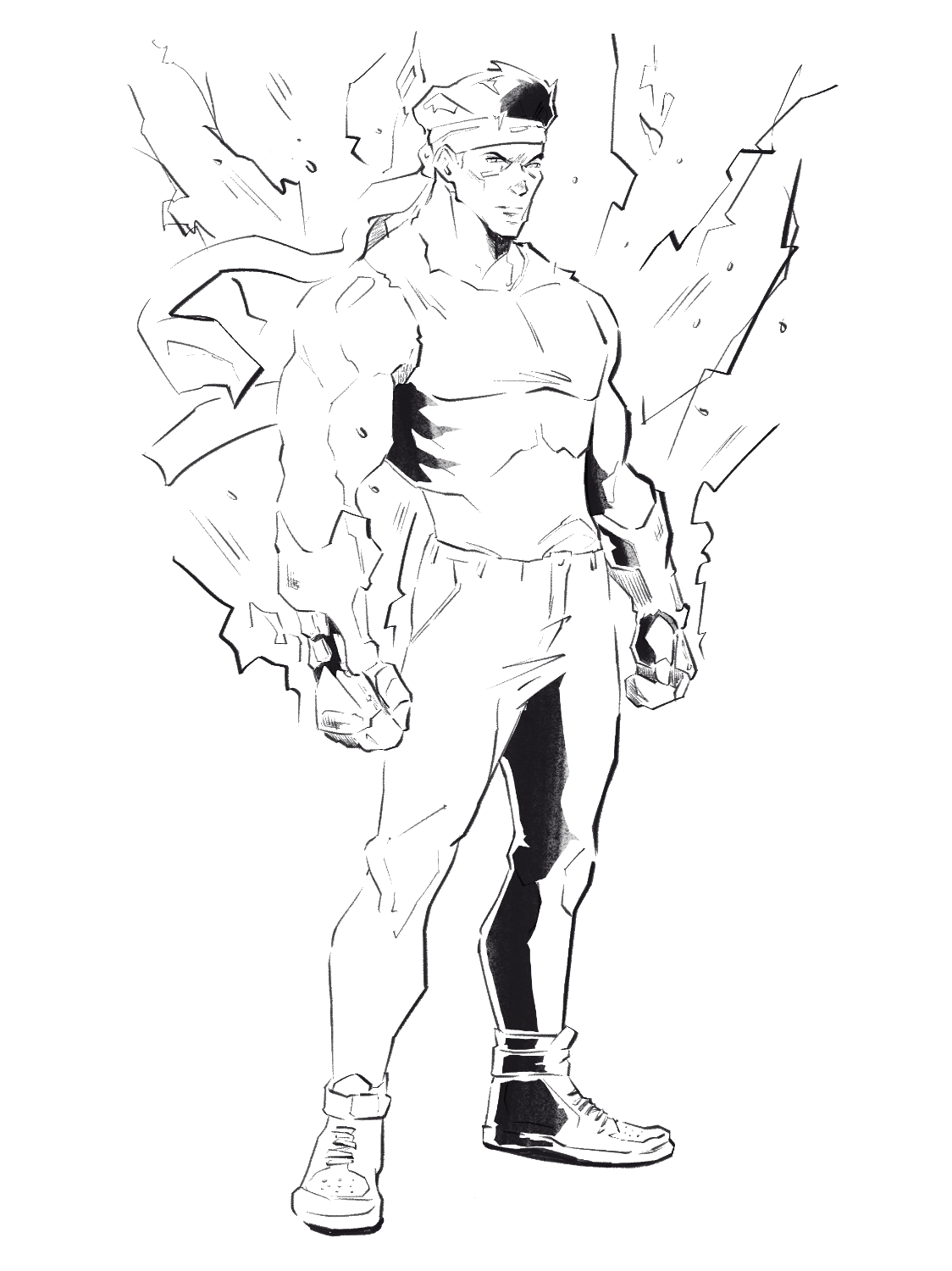Concept sketches and visual development work used to refine character design, movement, and storytelling decisions before final execution.
